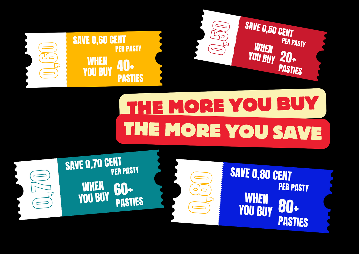 Save up to 64 euros on boxes of 20, 40, 60, or 80 pasties – perfect for your next party or family gathering! / Bis zu 64 Euro sparen auf Boxen mit 20, 40, 60 oder 80 Pasties – perfekt für die nächste Party oder ein Familienessen!